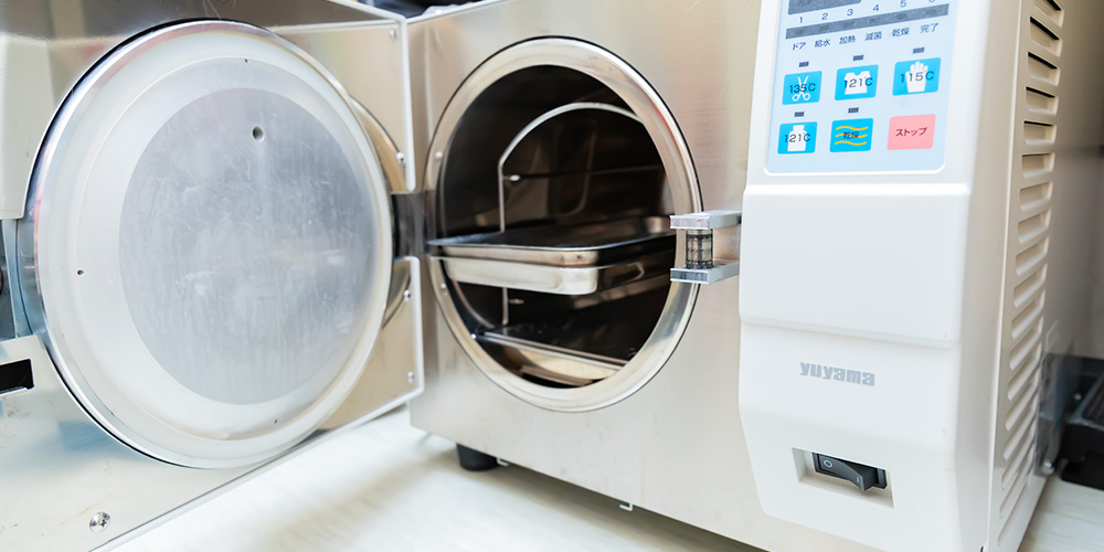 また、使用する器具の滅菌はもちろん、使い捨ての製品等も積極的に活用しています。歯を削る際に使用するタービンは専用注油器にて定期的にメンテナンスをおこなっています。